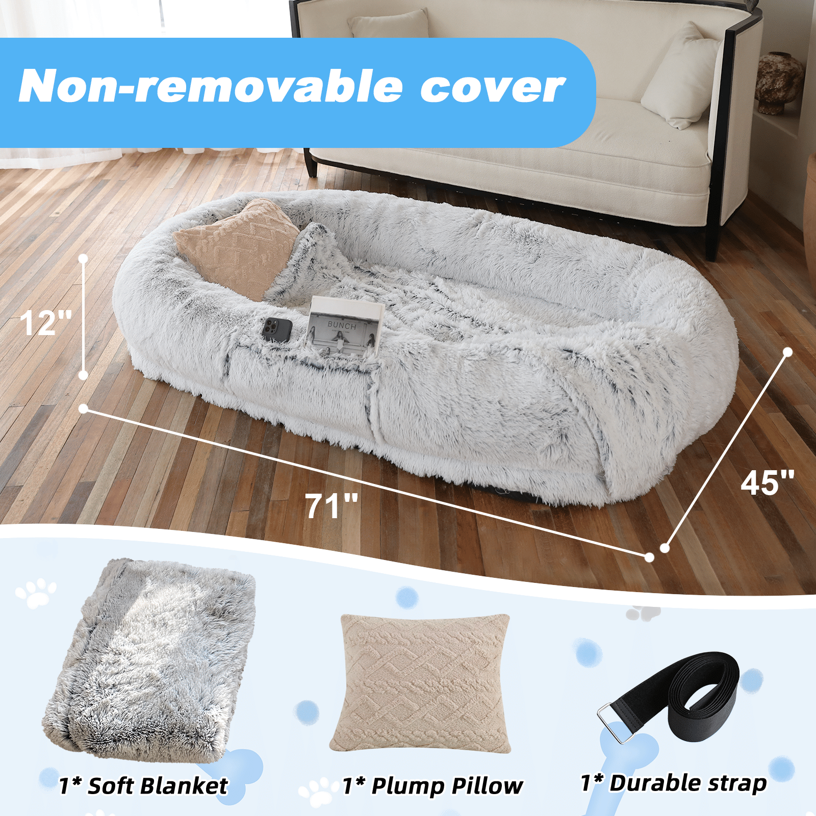 Home > Human Dog Bed, 71"x45"x12" Size Fits You and Pets, Non-removeable Cover, Washable Faux Fur Dog Bed for People Doze Off, Napping Orthopedic Dog Bed